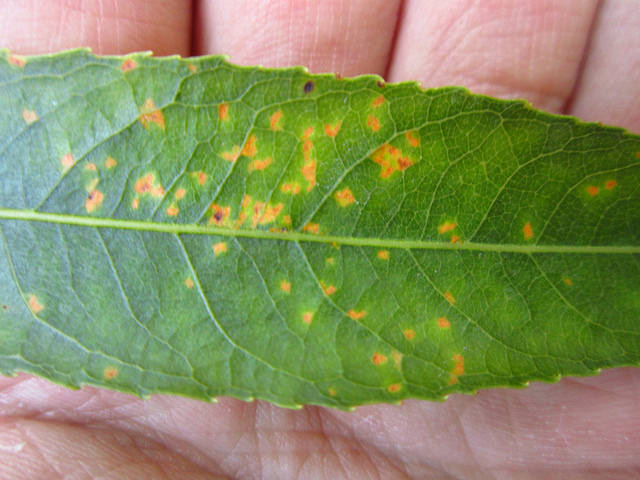 Notaremos la aparición de roya, al observar que en la parte del haz (la cara de la hoja que mira al cielo) aparecen puntitos amarillos acompañados de una decoloración general de la hoja y en el envés de la hoja (la cara que mira al suelo) aparecen unos puntitos marrones, rojizos o anaranjados con relieve.